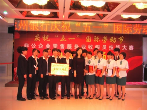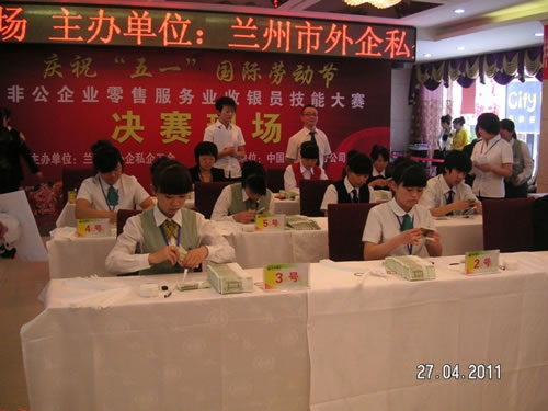 由蘭州市總工會主辦的“非公企業(yè)零售服務業(yè)收銀員技能比賽” 于2011年4月27日下午,在人民飯店落下帷幕。參加比賽的選手都是來自各公司和企業(yè)的業(yè)務尖兵,現(xiàn)場壓力重生,但是能和高手同臺競技是挑戰(zhàn),也是幸運,大家都為榮譽而奮斗。比賽經過單指單張、多指多張、機器點鈔、銀行卡刷卡、即問即答、工裝展示環(huán)節(jié)近四個小時的比拼。最終國芳百貨收銀部取得了驕人的成績,團隊授予“巾幗文明崗”,參賽的12名選手在單項成績中,兩人榮獲得一等獎、四人榮獲二等獎、四人榮獲三等獎、兩人榮獲優(yōu)秀獎。
