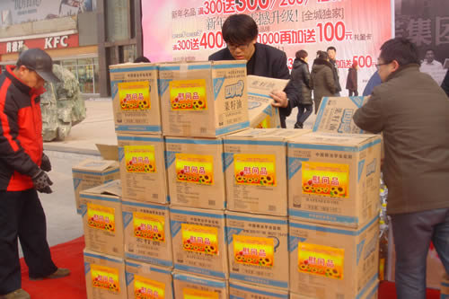捐款現(xiàn)場的慰問品區(qū)