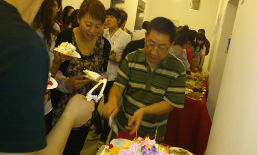 15、職能部門冷餐會(huì),大家分享著美味的蛋糕和甜點(diǎn)。