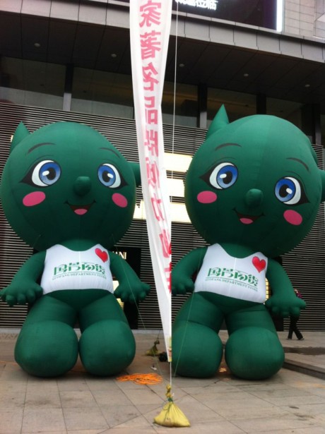 19、“Weekee”造型的巨型充氣吉祥物在店門口迎接每一位進(jìn)店的顧客。