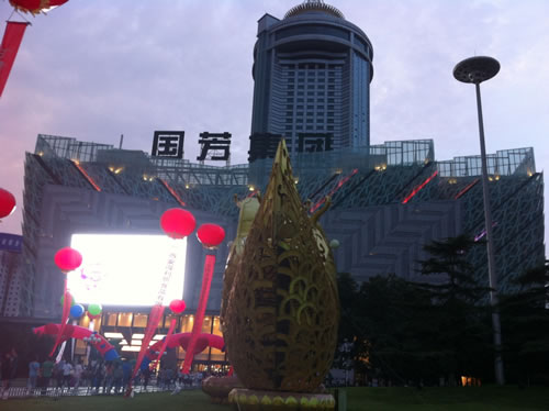 20、夜幕下的國(guó)芳百貨依然洋溢著店慶的濃郁氣氛。