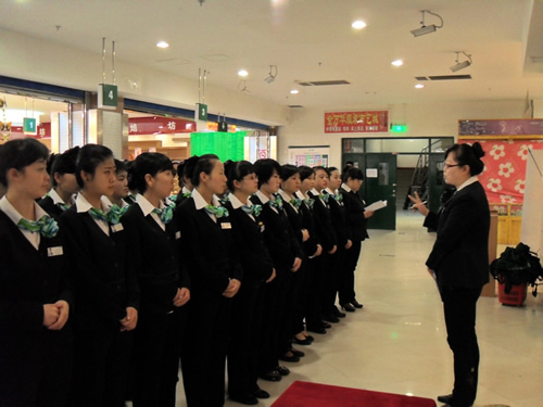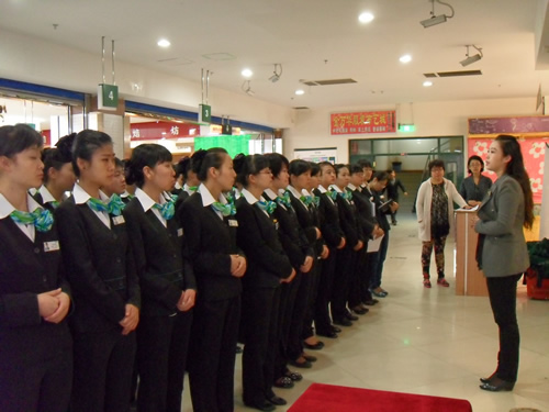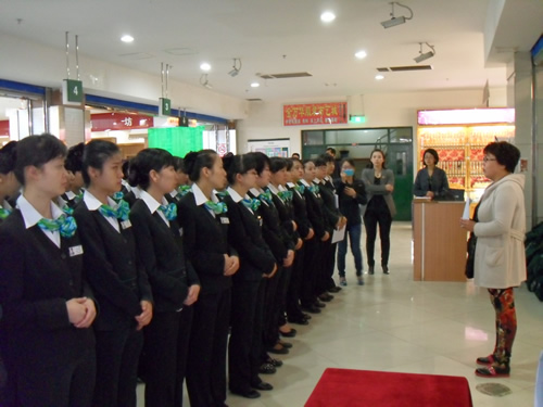 2013年4月9日是一個(gè)普通的工作日,但卻是國(guó)芳集團(tuán)收銀部崗位技能管理水平提升和發(fā)展歷程上非常重要的一天,因?yàn)榻裉靽?guó)芳集團(tuán)零售板塊蘭州地區(qū)收銀員職業(yè)技能評(píng)定工作正式拉開帷幕。早上8點(diǎn)整,在蘭州國(guó)芳綜超廣場(chǎng)店正式召開了本次活動(dòng)的動(dòng)員會(huì),動(dòng)員會(huì)由收銀部經(jīng)理韓曉麗女士主持,蒞臨現(xiàn)場(chǎng)的公司領(lǐng)導(dǎo)有集團(tuán)總裁助理、財(cái)務(wù)總監(jiān)余麗華女士,集團(tuán)總裁助理、人力資源總監(jiān)孟麗女士,集團(tuán)培訓(xùn)經(jīng)理、蘭州百貨人力資源經(jīng)理孫曉輝女士,綜超人力資源經(jīng)理馬琳先生。