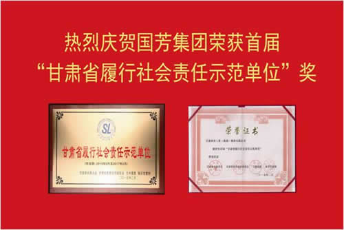 2015年2月,由中華慈善總會 頒發(fā)《中華慈善突出貢獻(xiàn)(單位)獎》;由甘肅商業(yè)聯(lián)合會、甘肅省民營經(jīng)濟研究會、蘭州晨報、每日甘肅網(wǎng)聯(lián)合頒發(fā)《甘肅省履行社會責(zé)任示范單位》獎。